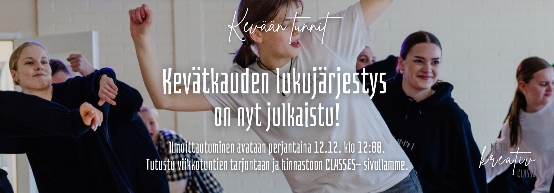 KEVÄÄN 2026 KREATIV CLASSES LUKUJÄRJESTYS ON JULKAISTU!